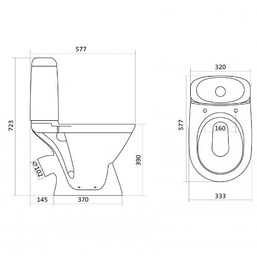 Унитаз российского производства, Сантек Римини с косым выпуском, изготовлен из санфаянса с нижним подводом воды. Бачок унитаза вмещает 6 литров воды, однорежимная арматура смыва, в комплекте крышка из полипропилена.