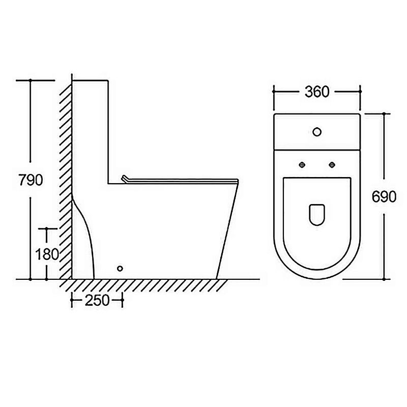Унитаз-моноблок Azario Скала 360х690х790 безободковый, слив "Торнадо", с быстросъемным сиденьем микролифт