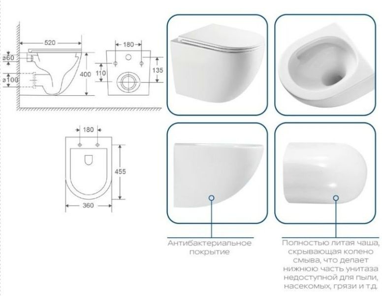 Дополнительные функции: Антигрязевое покрытие, антибактериальное покрытие, водоотталкивающее покрытие, бесшумный слив