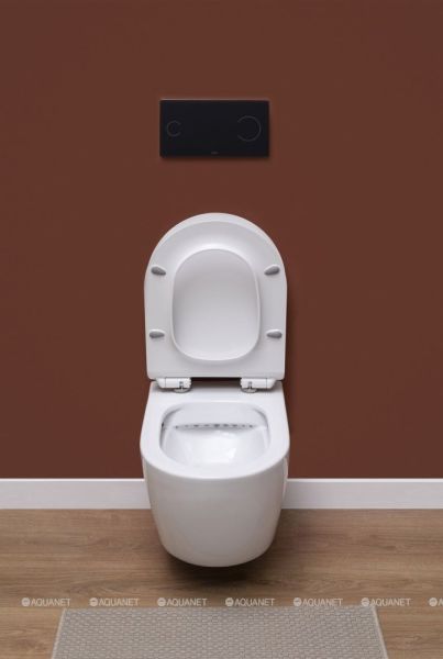 Унитаз подвесной Aquanet Rimless CETUS-W BL-102N-WHT напоминает по своему внешнему виду белоснежный бочонок, что смотрится и футуристично, и очень по-домашнему. Такое изделие скрасит собой любой санузел. И не только скрасит, но и внесет в него современные технологии. Одной из них является конструкция под названием RIMLESS, указывающая на отсутствие ободка, где обычно скапливается грязь. Система смыва в унитазе при отсутствии ободка также является инновационной. Вода омывает стенки изделий довольно эффективно, при этом ни одна капля не выплескивается наружу. Хорошей очистке унитаза способствует также грязеотталкивающее покрытие на эмали. Оно не допускает возможности грязи задерживаться, с идеально гладкой поверхности она смывается вместе с потоком воды. Ну, а инновационность крышки-сиденья, которой комплектуется унитаз, отметят сразу. Бросается в глаза ультратонкий дизайн, что выглядит очень эстетично, а при использовании трудно не отметить плавность работы системы Soft Close. Подвесной вариант установки требует приобретения дополнительно системы инсталляции. Установка на инсталляцию осуществляется с помощью скрытого монтажа.