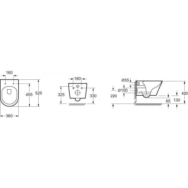 Оснащение: чаша унитаза безободковая, сиденье с микролифтом из дюропласта, быстросъёмное с металлическим креплением