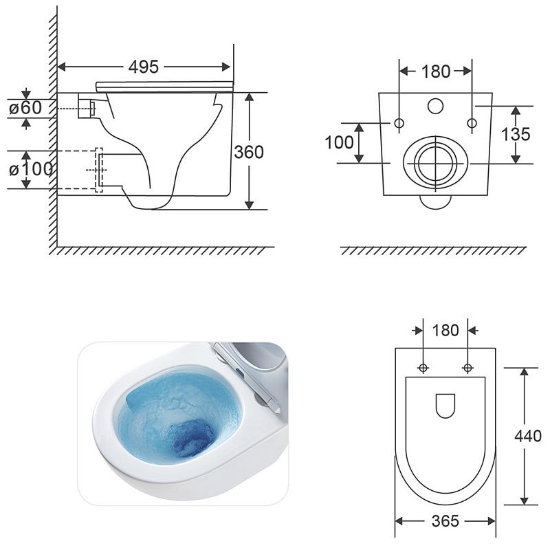 • Габариты 365х495х360 мм делают этот унитаз идеальным решением даже для небольших помещений, не жертвуя при этом комфортом использования.