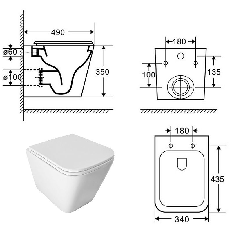 Унитаз подвесной Azario PRO 340х490х350 безободковый, слив "скрытое Торнадо", в комплекте с быстросъемным сидением микролифт