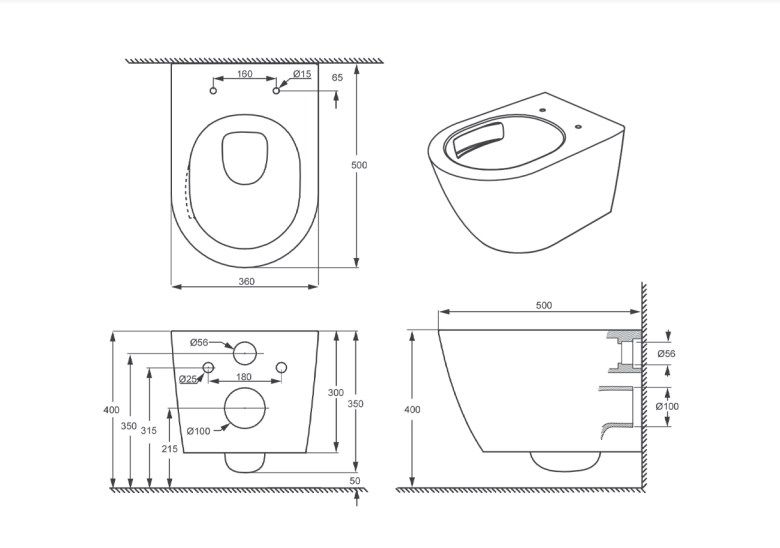Унитаз подвесной безободковый (торнадо) D&K Rhein.Bach 500*360*350мм, сиденье микролифт, белый (DT1476516) купить