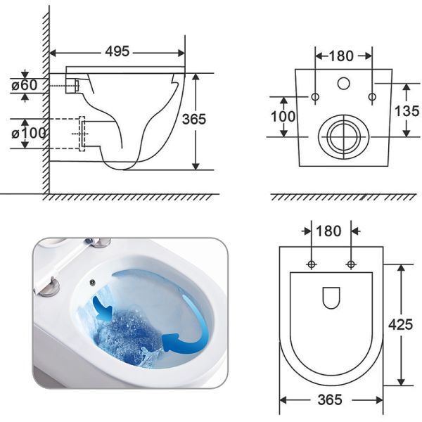Идеальное решение для ванных комнат любого размера. Компактные габариты 365х495х365 мм позволяют установить унитаз даже в небольших помещениях, не жертвуя при этом комфортом и функциональностью.