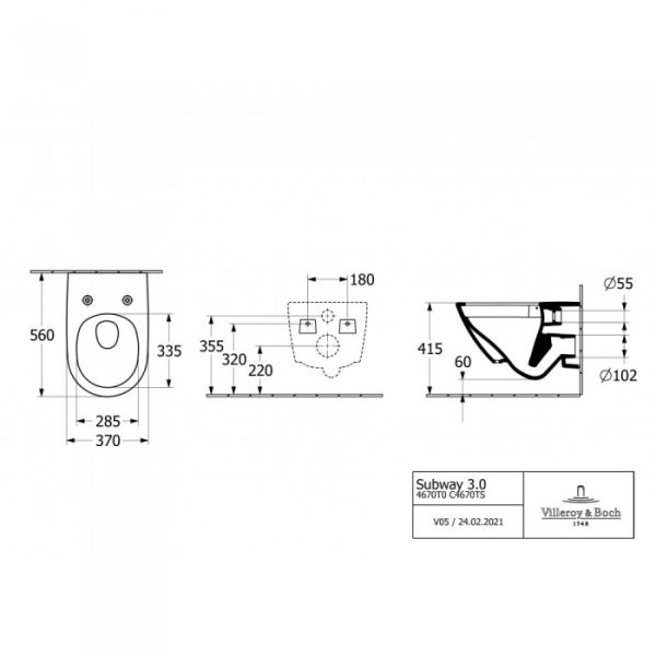 Унитаз подвесной Villeroy Boch с сиденьем Villeroy & Boch Subway 3.0 4670TSR1 альпийский белый