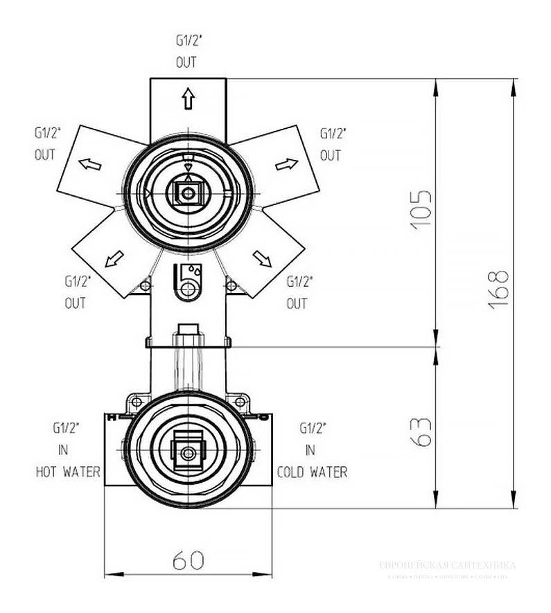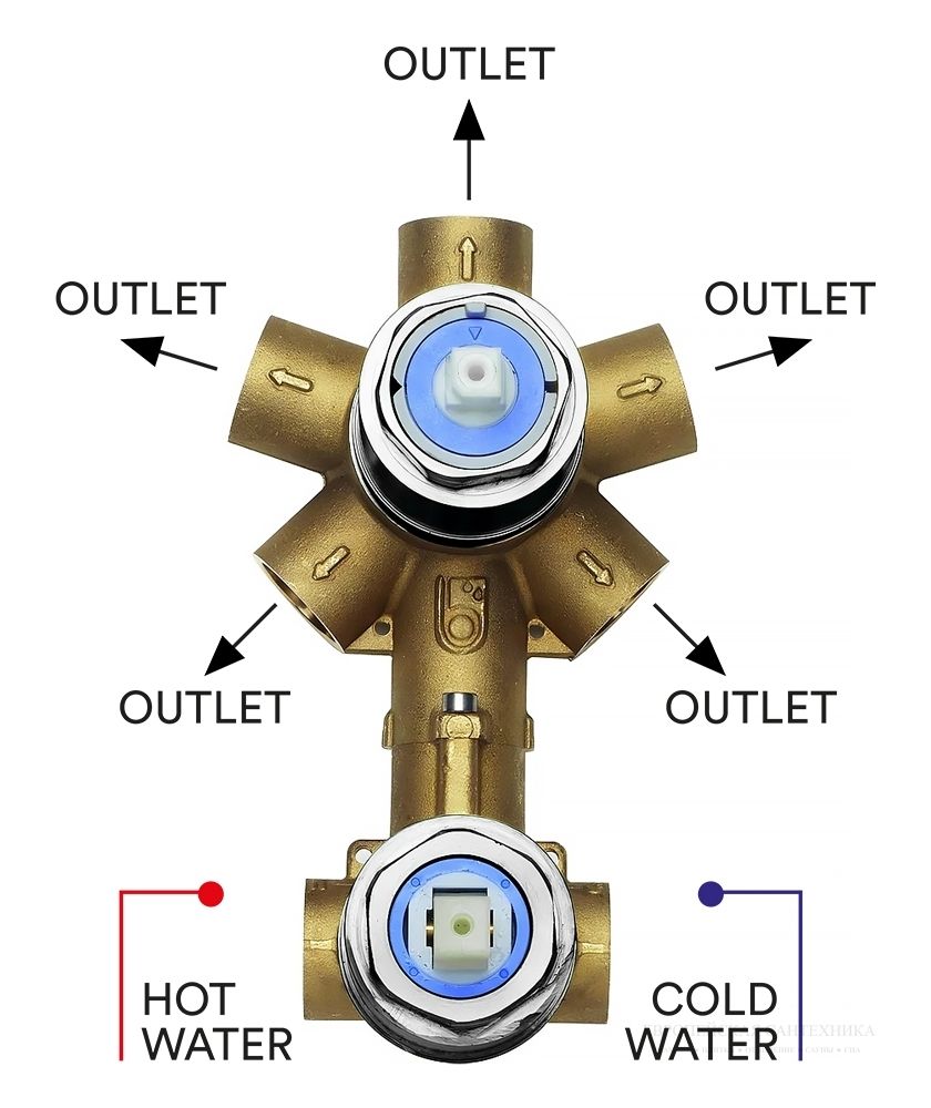 Универсальная скрытая часть Bossini Z00130 на 2-5 выходов для монорычажного смесителя купить
