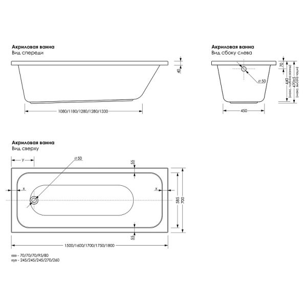 АННАБЕЛЛА-Ванна акриловая 1600*700мм,прямоугольная,белая ВЛС_017313