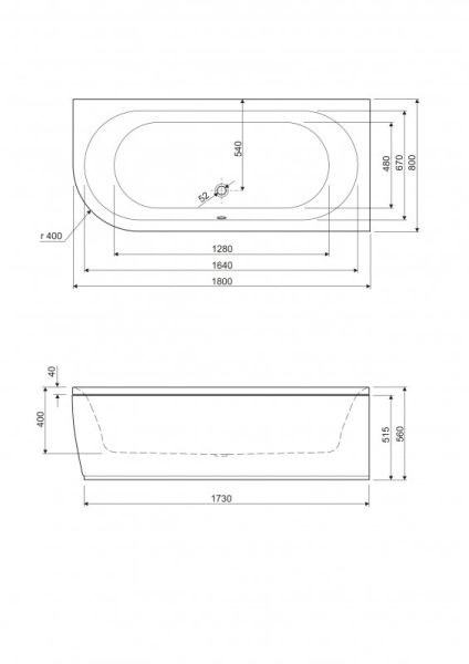Ванна акриловая Cezares METAURO CORNER-180-80-40-R-W37