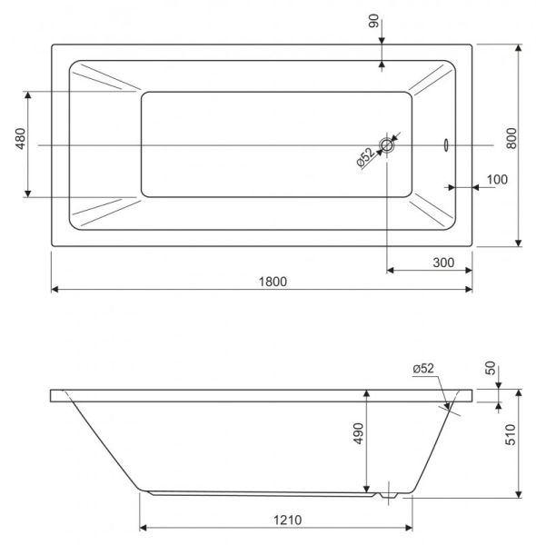 Ванна акриловая Cezares PLANE SOLO-180-80-49-W37