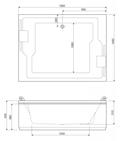 Ванна акриловая Cezares PLANE_DUO-190-145-51-W37