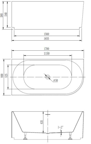 Ванна акриловая Vincea VBT-428-1700L, 1700*800*580, цвет белый, левая, щелевой перелив