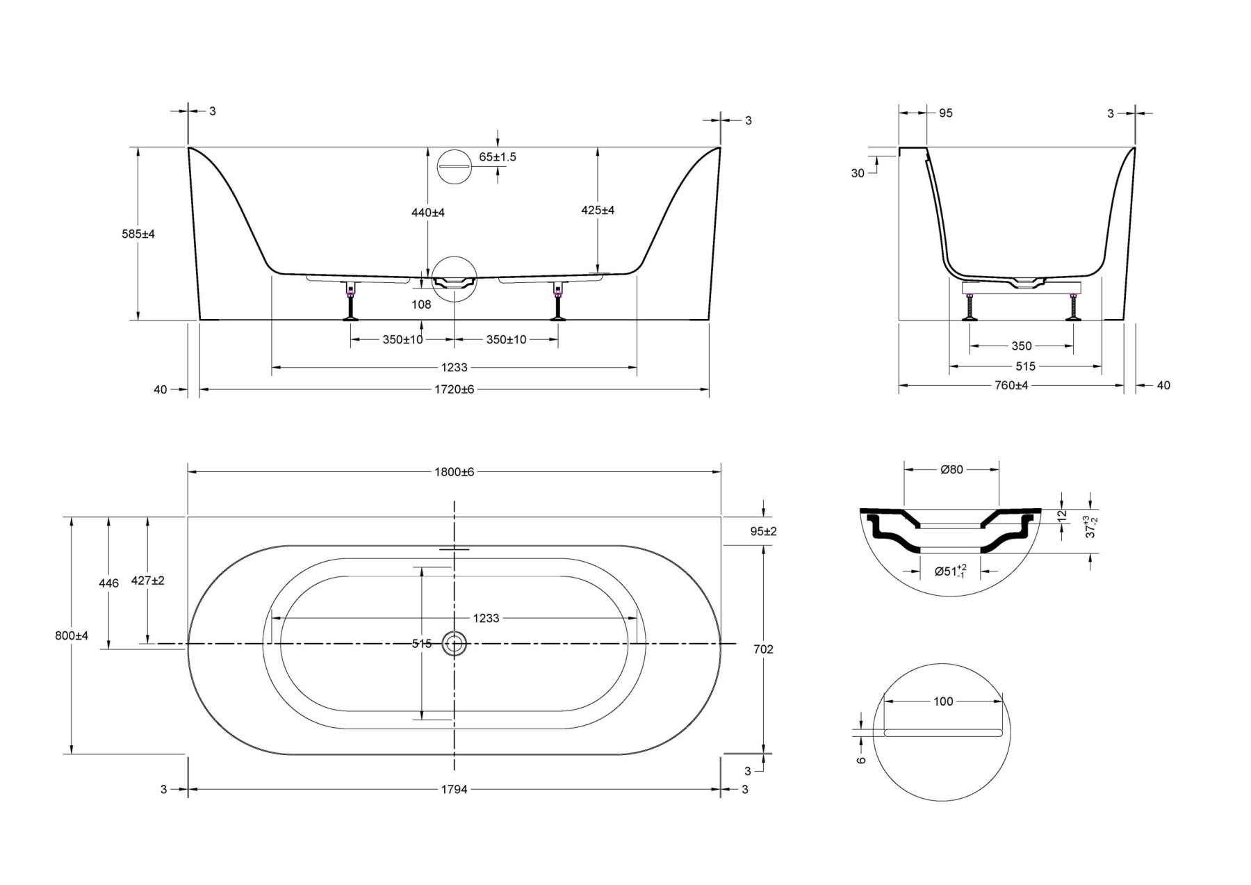 Ванна акриловая Vincea VBT-703-1800, цвет белый, щелевой перелив