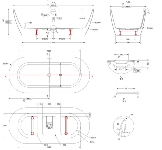 Ванна акриловая Vincea VBT-705-1800, цвет белый, щелевой перелив