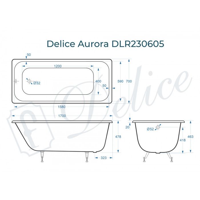 Ванна чугунная Delice Aurora DLR230605 170x70