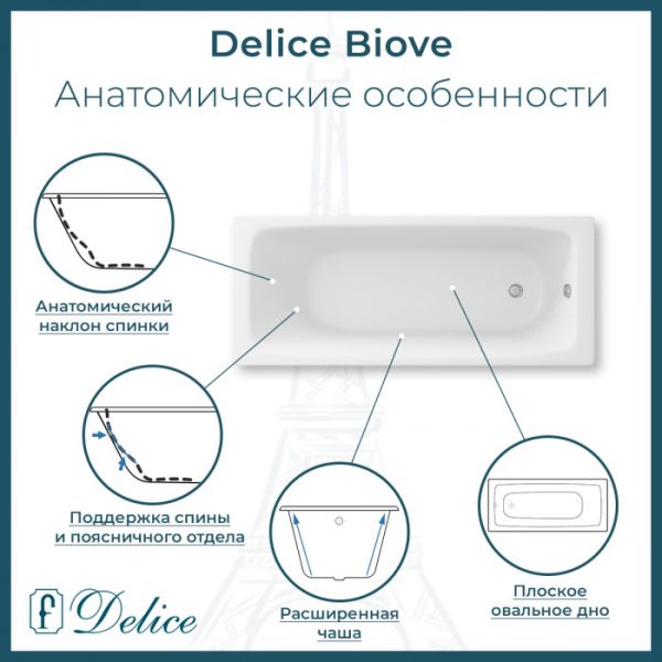 Delice Biove 170х75 - классическая чугунная ванна в современном исполнении. Универсальный дизайн будет идеально смотреться в ванной комнате и дополнит любой стиль интерьера. Мягкие линии овальной формы дна добавляют ощущение уюта и расслабленности, Delice Biove создана для отдыха и релаксации. Такая ванна обеспечит максимальный релакс после тяжелого трудового дня. Внутренняя анатомическая форма обеспечит максимальный комфорт. Даже самый требовательный покупатель оценит ее по достоинству.