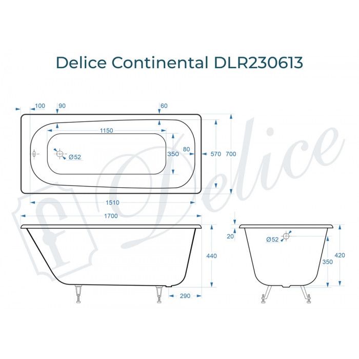 Ванна чугунная Delice Continental DLR230613 170x70 купить