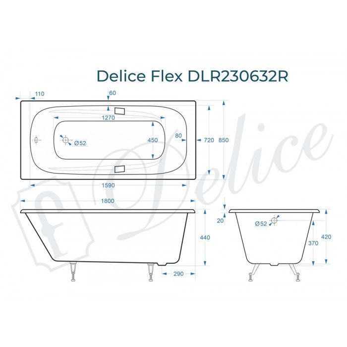 Ванна чугунная Delice Flex DLR230632R 180х85 с отверстиями под ручки купить