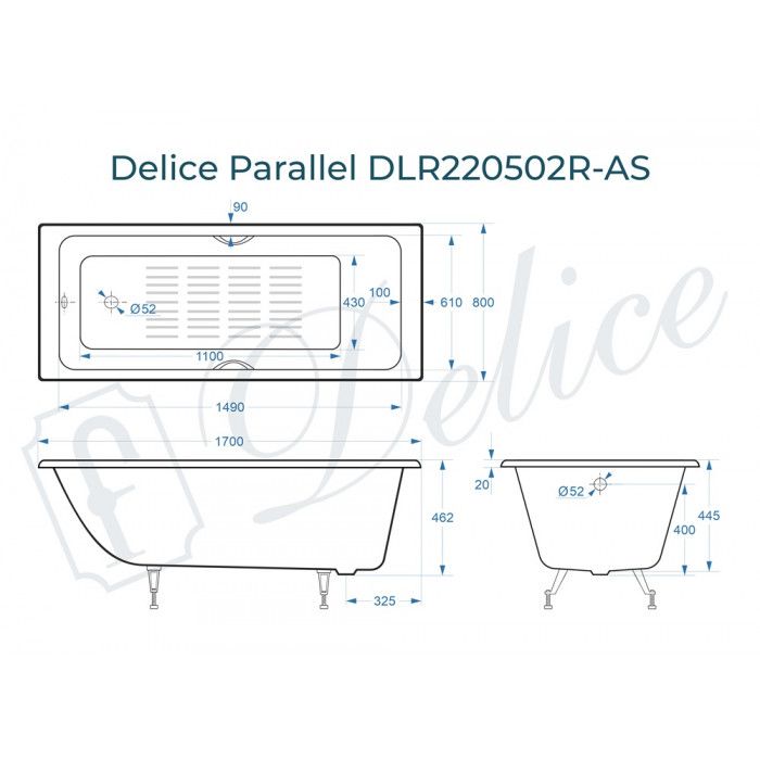 Данная модификация Delice Parallel противоскользящее покрытие дна, которое гарантирует безопасный и комфортный прием ванны и душа. Покрытие наносится специальным оборудованием на производстве в виде тонких полос, практически не заметно визуально и не ощущается при использовании.