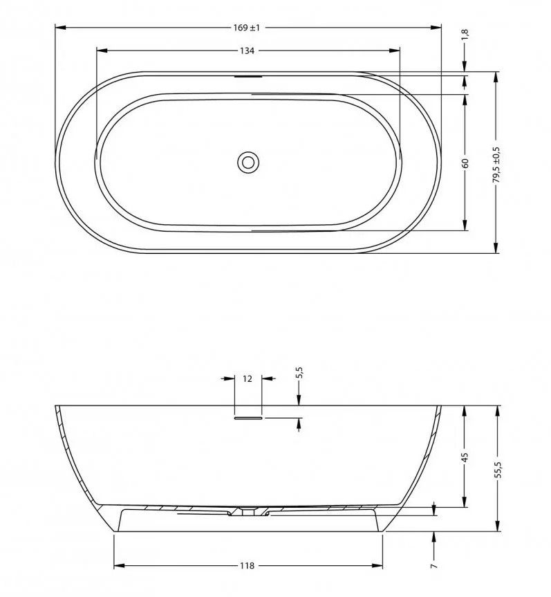Цветная ванна из искусственного мрамора RIHO Bilbao 170х80, PEBBLE GRAY (Серая Галька) - композитная ванна, изготовленная из однородной каменной массы - каменная на ощупь, тёплая внутри. Это имитация мрамора: белый матовый цвет ванны при наполнении водой заиграет оригинальной текстурой камня.Твёрдая поверхность ванны устойчива к механическим повреждениям, гигиенична и химически нейтральна.