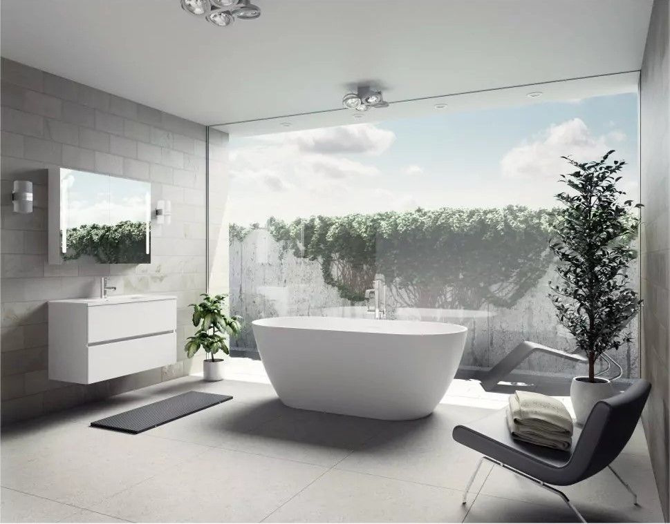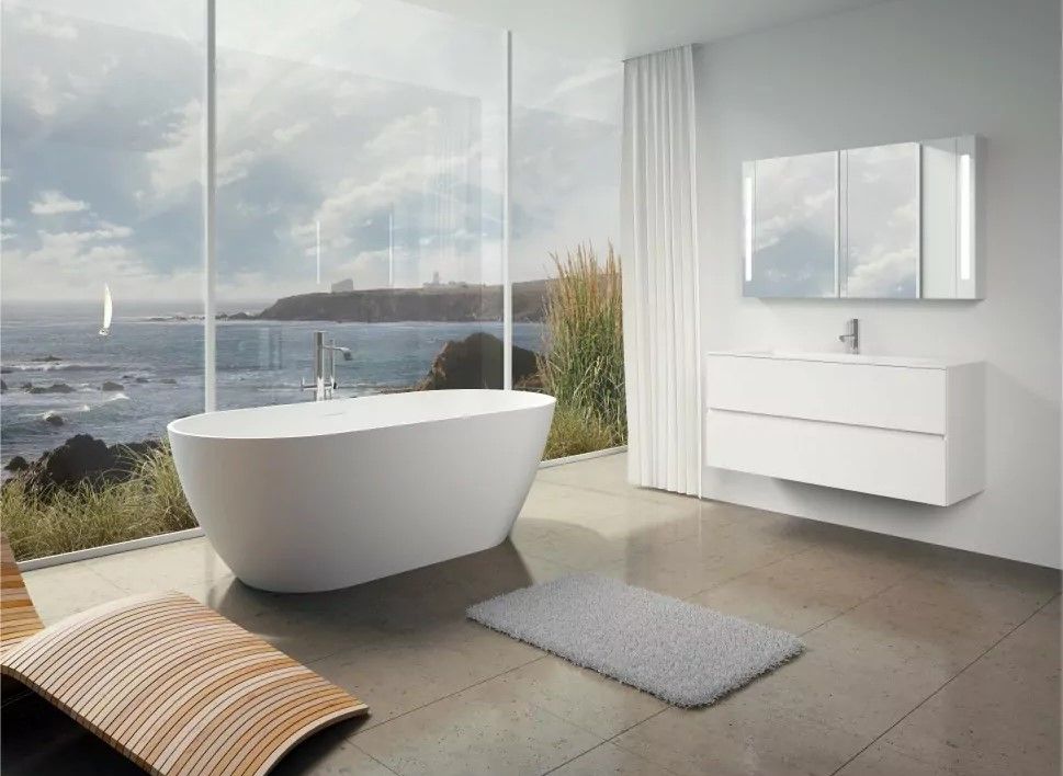 Твёрдая поверхность ванны устойчива к механическим повреждениям, гигиенична и химически нейтральна.