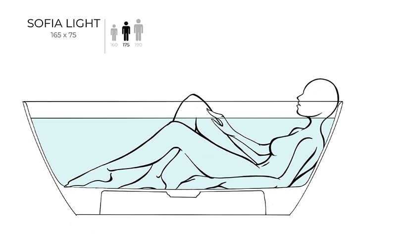 При габаритах 165х75 см SOFIA LIGHT будет идеальным вариантом как для больших, так и для маленьких ванных комнат, где одинаково важны чистые линии и повседневная практичность. Эта модель идеально подойдёт как для расположения у стены, так и для размещения в центре комнаты.