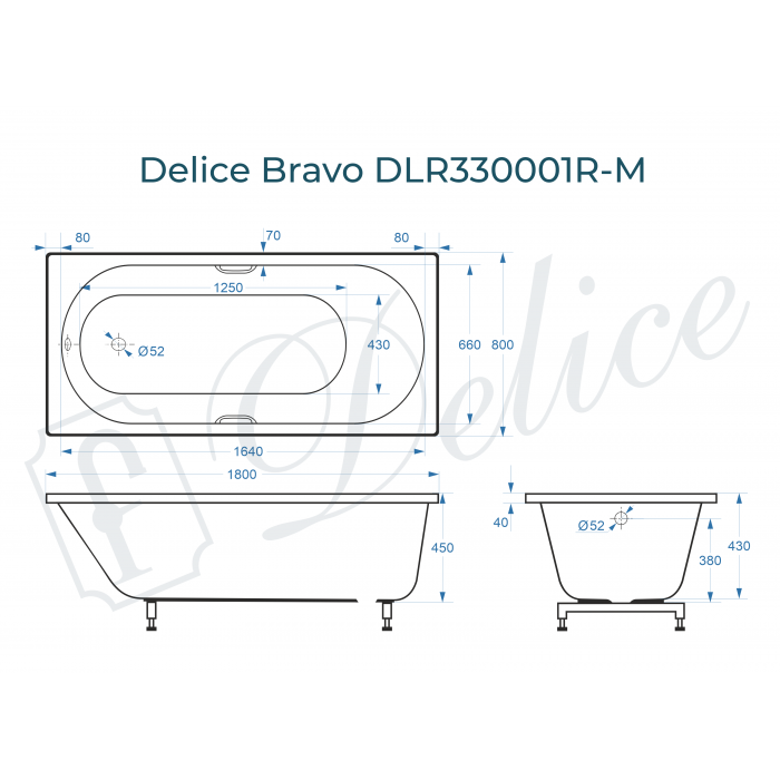 Ванна из литьевого мрамора Delice Bravo DLR330001R-M 180x80 матовая с ручками хром купить
