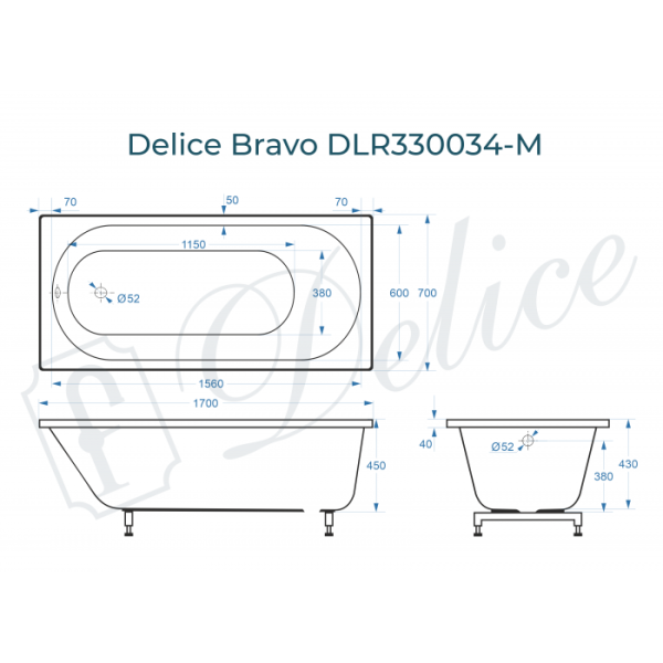 Delice Bravo 170х70 - классическая модель ванны из литьевого мрамора с матовым финишным покрытием. Ванна производится из высокопрочного современного материала. Модель Bravo создана для современных ванных комнат и обладает универсальным дизайном, а, благодаря овальной форме дна, которое смягчает прямоугольную форму самой ванны, она прекрасно впишется в интерьер ванной комнаты. Мягкие линии добавляют ощущение уюта и расслабленности, Delice Bravo создана для отдыха и релаксации. Размер 170х70 см идеально подойдет для ванных комнат среднего и большого размера.
