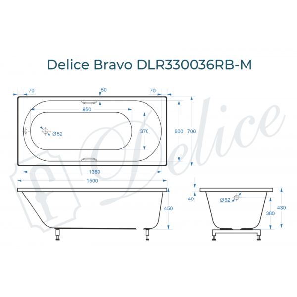 Delice Bravo 150х70 с ручками - классическая модель ванны из литьевого мрамора с матовым финишным покрытием. Ванна производится из высокопрочного современного материала. Модель Bravo создана для современных ванных комнат и обладает универсальным дизайном, а, благодаря овальной форме дна, которое смягчает прямоугольную форму самой ванны, она прекрасно впишется в интерьер ванной комнаты. Мягкие линии добавляют ощущение уюта и расслабленности, Delice Bravo создана для отдыха и релаксации. Компактные габариты 150х70 см позволяют установить ванну даже в небольшом помещении.