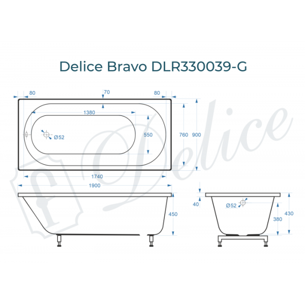 Ванна из литьевого мрамора Delice Bravo DLR330039-G 190x90 глянцевая