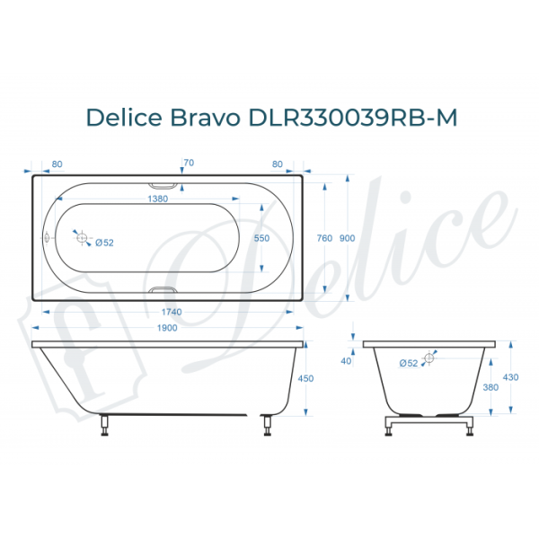 Delice Bravo 190х90 с ручками - классическая модель ванны из литьевого мрамора с матовым финишным покрытием. Ванна производится из высокопрочного современного материала. Модель Bravo создана для современных ванных комнат и обладает универсальным дизайном, а, благодаря овальной форме дна, которое смягчает прямоугольную форму самой ванны, она прекрасно впишется в интерьер ванной комнаты. Мягкие линии добавляют ощущение уюта и расслабленности, Delice Bravo создана для отдыха и релаксации. Размер 190х90 см идеально подойдет для ванных комнат большого размера.