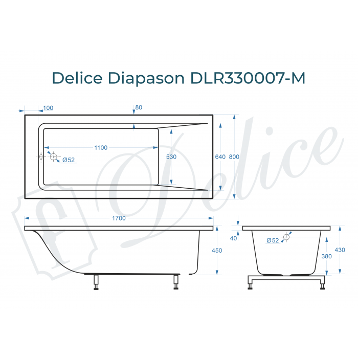 Delice Diapason 170х80 - ультрасовременная модель ванны из литьевого мрамора с матовым финишным покрытием. Ванна производится из высокопрочного современного материала. Модель Diapason отличается прямоугольной формой чаши, широким плоским дном и плавным анатомическим переходом от бортика к спинке. Увеличенная чаша обладает повышенным комфортом и удобством. Яркий белый свет акцентирует внимание на четких линиях и стильном дизайне ванны. Ванна имеет классическую длину 170 и увеличенную ширину 80 см и подойдет для ванной комнаты среднего и большого размера.