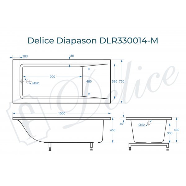 Для установки используются фирменные ножки Delice, которые имеют надежное и прочное крепление, обеспечивают высокую устойчивость ванны и регулируются по высоте. Высота на ножках варьируется от 59.5 до 63 см. С помощью регулировки можно нивелировать геометрические отклонения пола, стен и углов в ванной комнате. За счет высокой плотности материала, при установке не требуется шумоизоляция, а также заземление, так как литьевой мрамор не проводит электрический ток. При необходимости изменения габаритов под ванную комнату, борты ванны можно уменьшить механической обработкой.