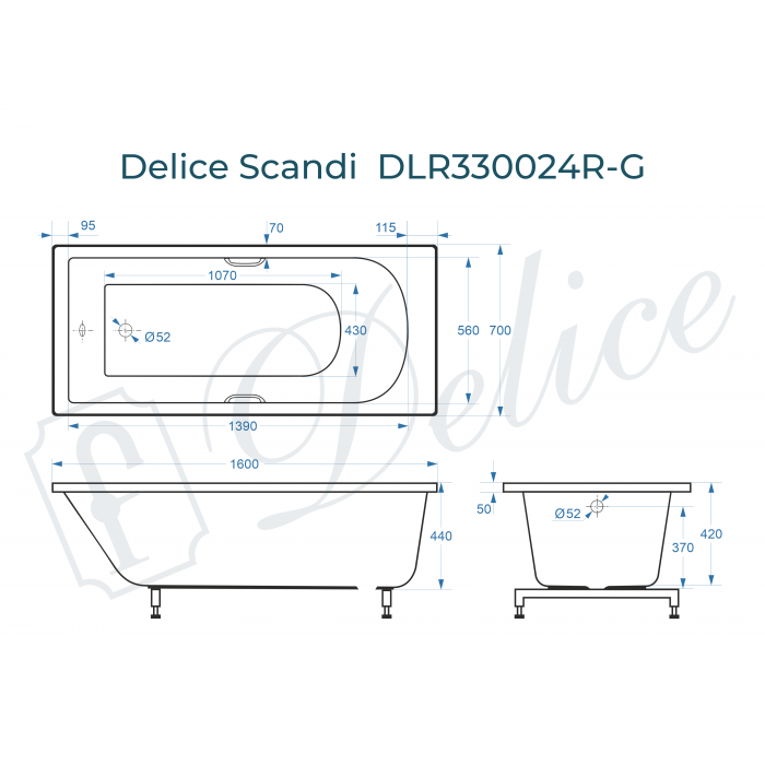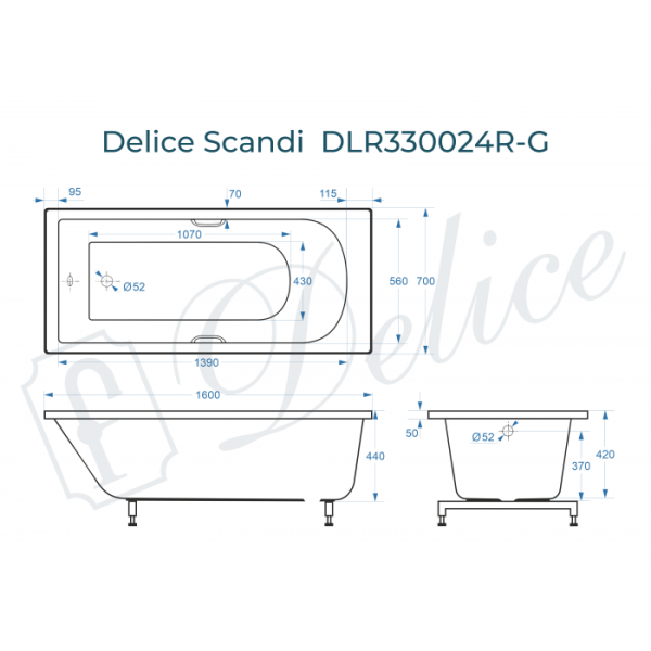 Для установки используются фирменные ножки Delice, которые имеют надежное и прочное крепление, обеспечивают высокую устойчивость ванны и регулируются по высоте. Высота на ножках варьируется от 60 до 65 см. С помощью регулировки можно нивелировать геометрические отклонения пола, стен и углов в ванной комнате. За счет высокой плотности материала, при установке не требуется шумоизоляция, а также заземление, так как литьевой мрамор не проводит электрический ток. При необходимости изменения габаритов под ванную комнату, борты ванны можно уменьшить механической обработкой.