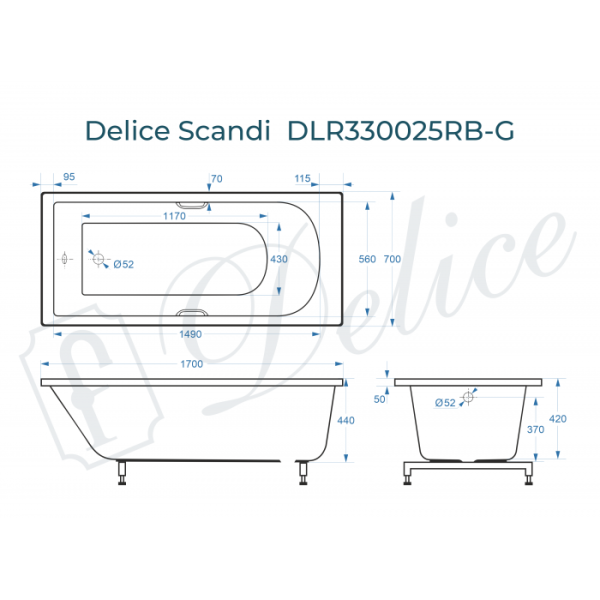 Для установки используются фирменные ножки Delice, которые имеют надежное и прочное крепление, обеспечивают высокую устойчивость ванны и регулируются по высоте. Высота на ножках варьируется от 60 до 65 см. С помощью регулировки можно нивелировать геометрические отклонения пола, стен и углов в ванной комнате. За счет высокой плотности материала, при установке не требуется шумоизоляция, а также заземление, так как литьевой мрамор не проводит электрический ток. При необходимости изменения габаритов под ванную комнату, борты ванны можно уменьшить механической обработкой.