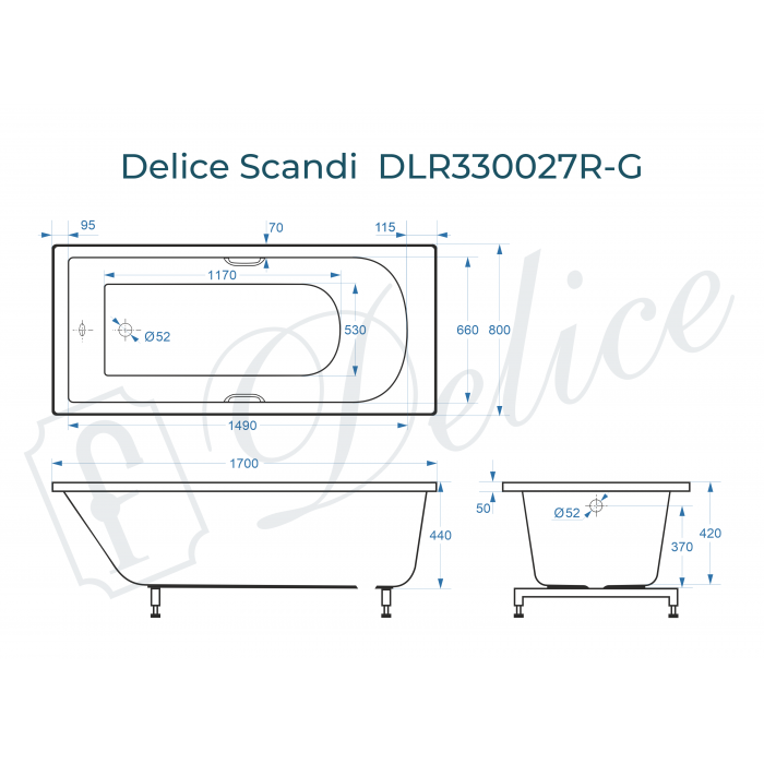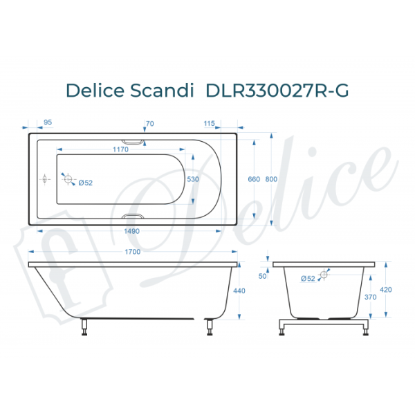Ванна из литьевого мрамора Delice Scandi DLR330026RB-G 170x80 глянцевая с ручками хром купить