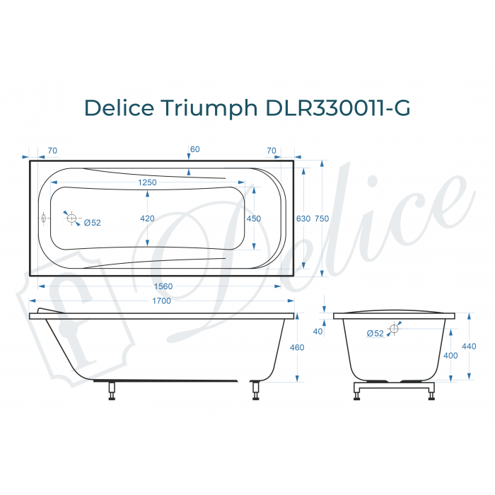 Ванна из литьевого мрамора Delice Triumph DLR330011-G 170x75 глянцевая