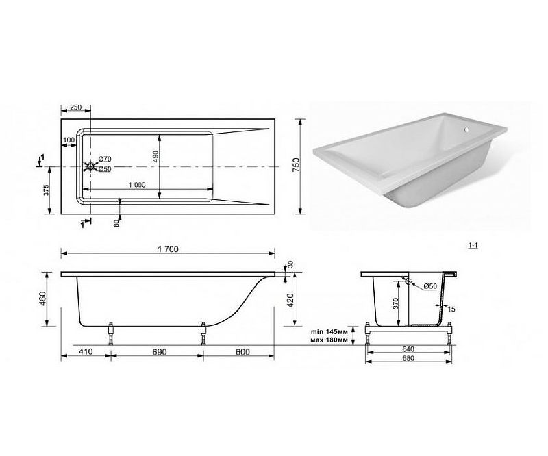 Ванна из литьевого мрамора Эстет Delta 170В silk ФР-00014389 170x70см белый матовый