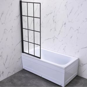 Шторка на ванну Veconi PL77L 90 x 150 см распашная, стекло прозрачное, черный матовый, левая, PL77L-90-01-C6Душевая шторка на ванну
