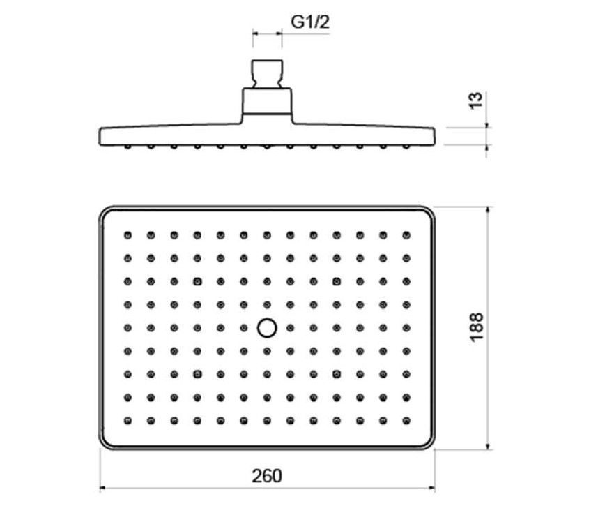 Размер верхнего душа (см): 26,0X18,8X6,8