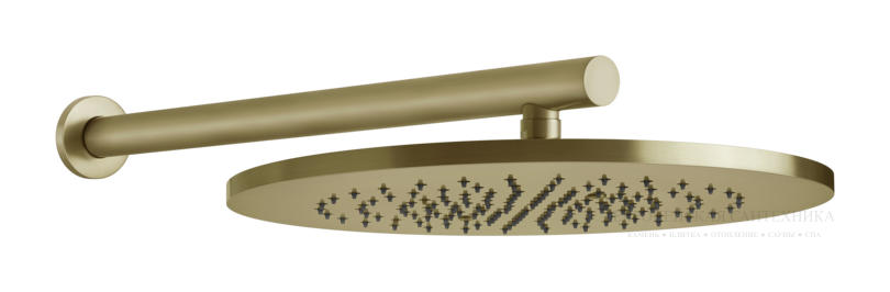 Gessi 316 верхний душ Ø355 мм, с защитой от известкового налёта, шарнирный, угол ориентации 25, тип насадки для душат дождевая, настенный держатель 500 мм. Материал нержавеющая сталь, цвет Brass Brushed PVD.