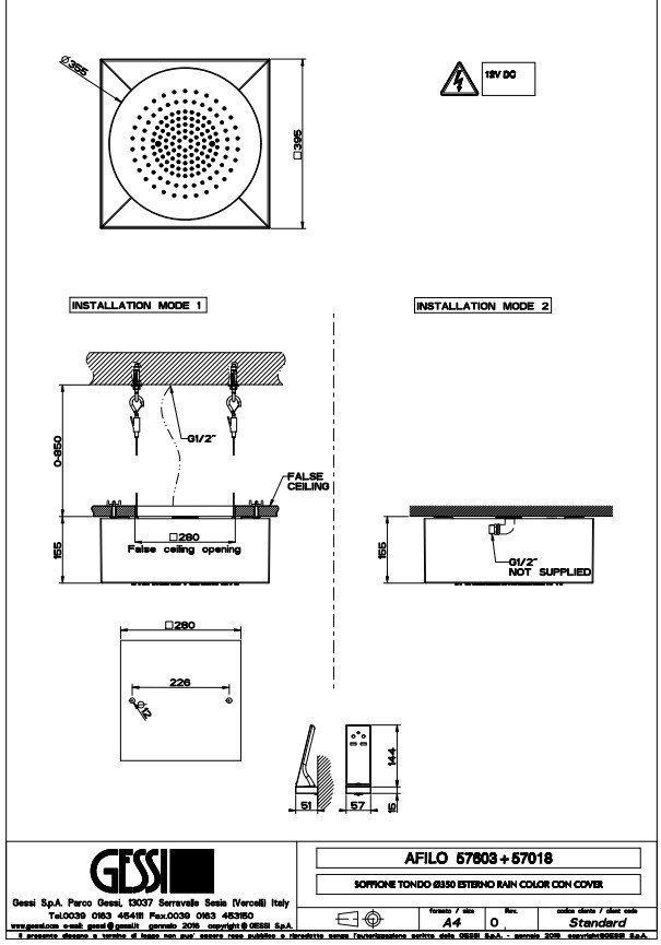 Gessi INCISO 57603 279 Потолочная душевая система (внутренняя часть). Встраиваемая в потолок душевая система Ø350 с функциями тропический ливень и хромотерапия. Комплектуется пультом управления с держателем. Требуется источник питания на 12В. Приобритается опционально блок питания арт. 57099. Артикул необходимо доукомплектовать панелью 57018 в желаемой отделке.