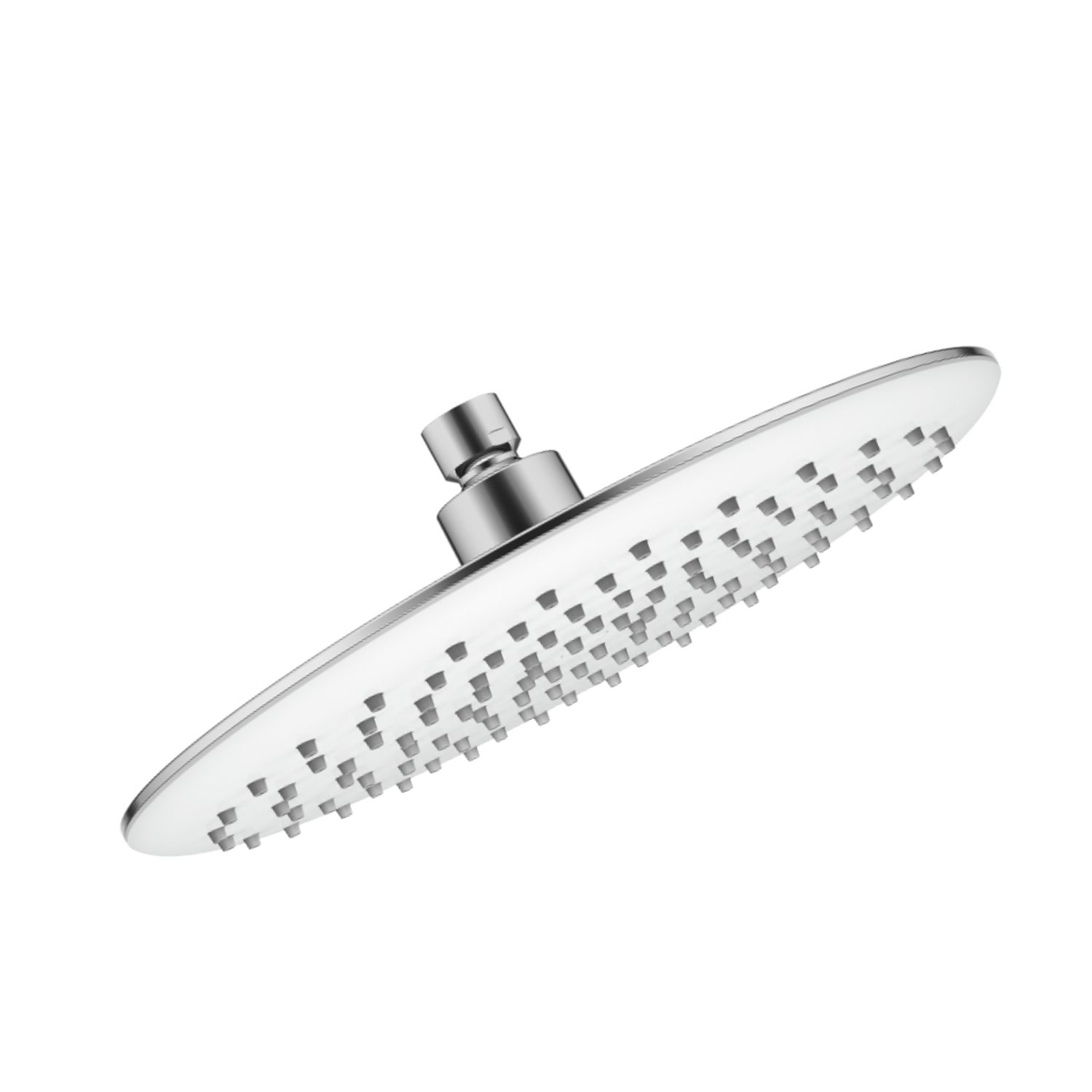 Душевая насадка верхняя, круглая, материал ABS - пластик, диаметр 260 мм, белая лицевая пластина, темно-серые форсунки, верхняя пластина ABS-пластик.