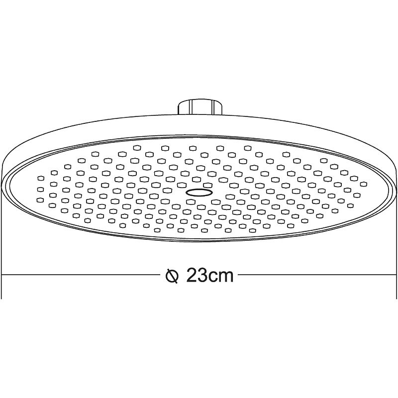Верхний душ с регулировкой угла наклона Orange, 23 х 23 см, черный матовый, S13TSbВерхний душ с регулировкой угла наклона (d230 мм) создаёт эффект тропического дождя, что дарит непередаваемые эмоции во время ежедневных банных процедур. Форсунки верхнего душа с функцией легкого очищения от известкового налета.Основные характеристики:Ширина: 23 см