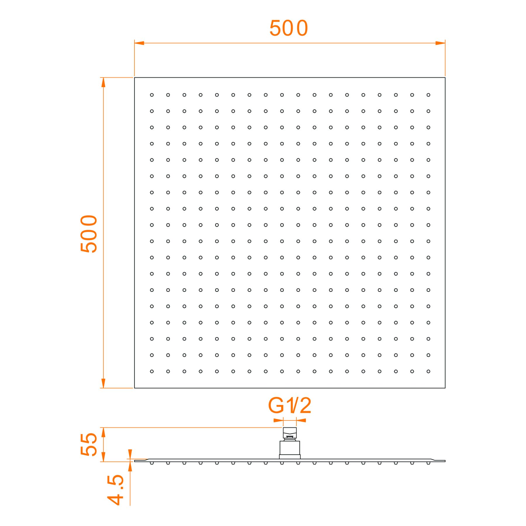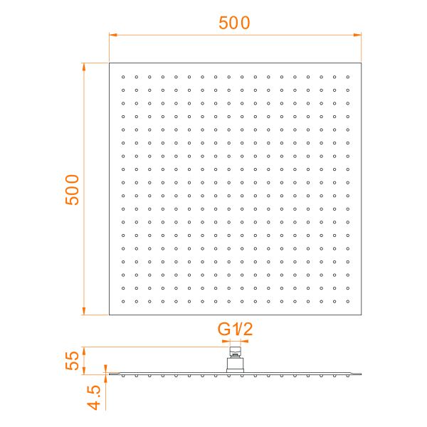 - Размер верхнего душа, см:50