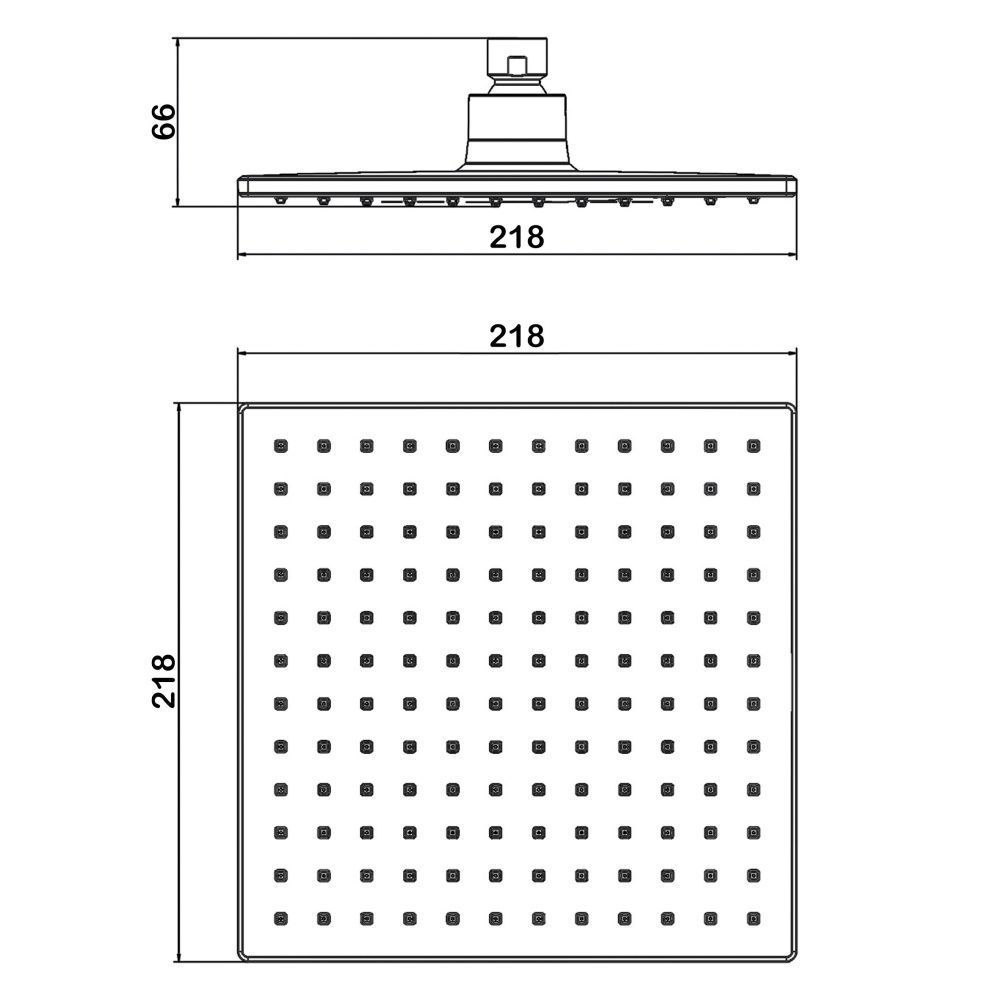 Верхняя душевая насадка Хромированная лицевая поверхность. Система Air-In. Латунный шарнирный крепеж. Размер - 218х218 мм.