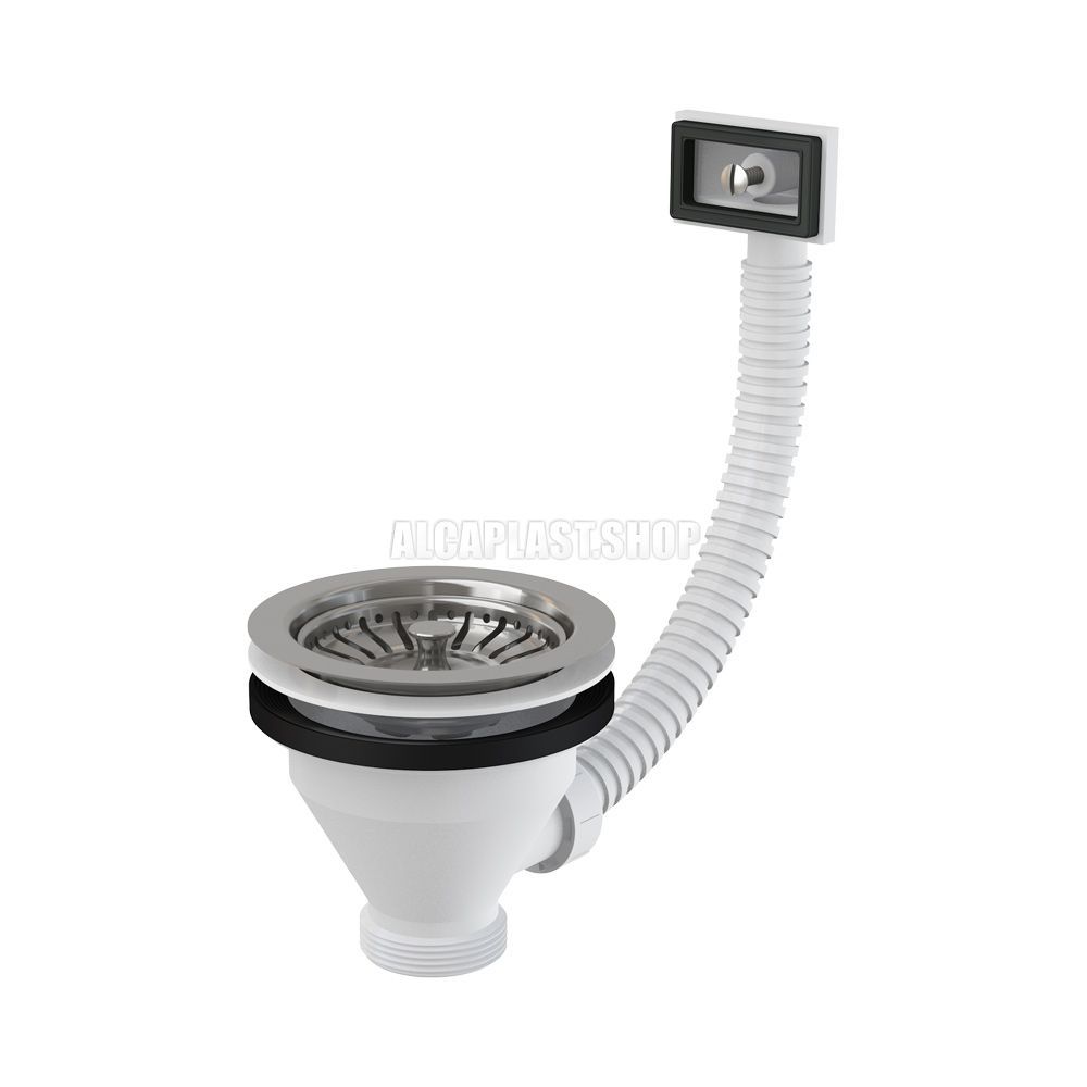 Водослив сифона для мойки AlcaPlast 6/4" с нержавеющей решеткой ?115 и гофропереливом A38 купить