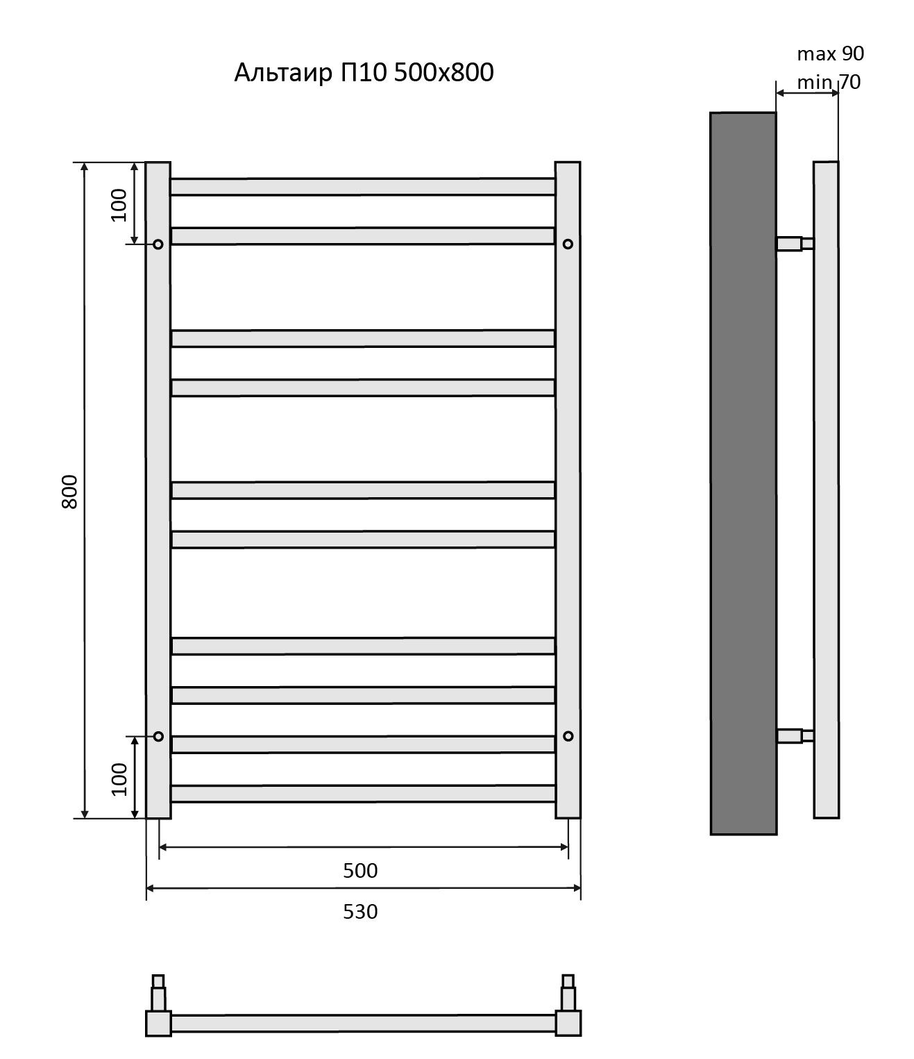 Полотенцесушитель водяной Aquatek (Акватек) Альтаир П10 500х800 мм, черный муар, подключение нижнее/диагональное, сверхпрочная пищевая нержавеющая сталь AISI 304L, гарантия 10 летХарактеристики:30х30/20х20,без фитинговКомплектация:полотенцесушитель;