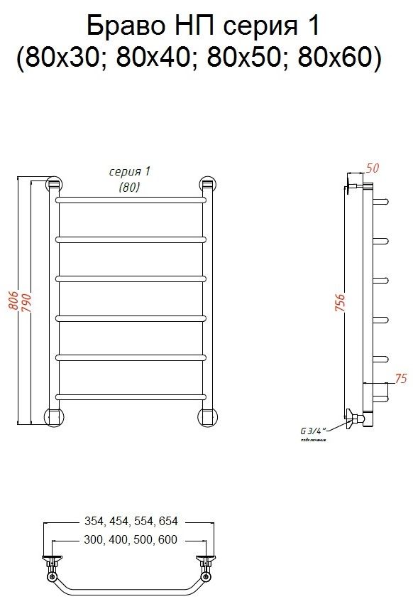 Водяной полотенцесушитель Тругор Браво НП 1 80x50см хром Браво1/нп8050
