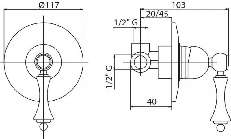 Встраиваемый однорычажный смеситель для душа, золото Cezares MARGOT-DIM-03/24-Bi